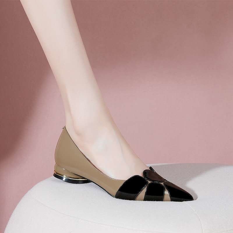 Red thick heel flat soft leather women’s shoes